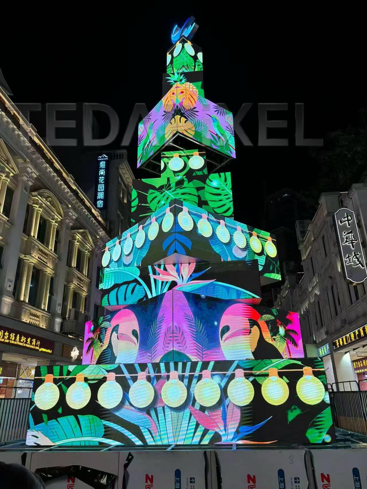 Crafted with high-resolution LED panels, our displays deliver vibrant, dynamic visuals that shift from icy blue snowflake motifs to tropical neon botanicals—all customizable to match your brand’s aesthetic or holiday theme. The modular, 3D structure is engineered for easy assembly, weather resistance, and seamless content playback, ensuring your display shines bright day and night, even in high-traffic urban spaces.